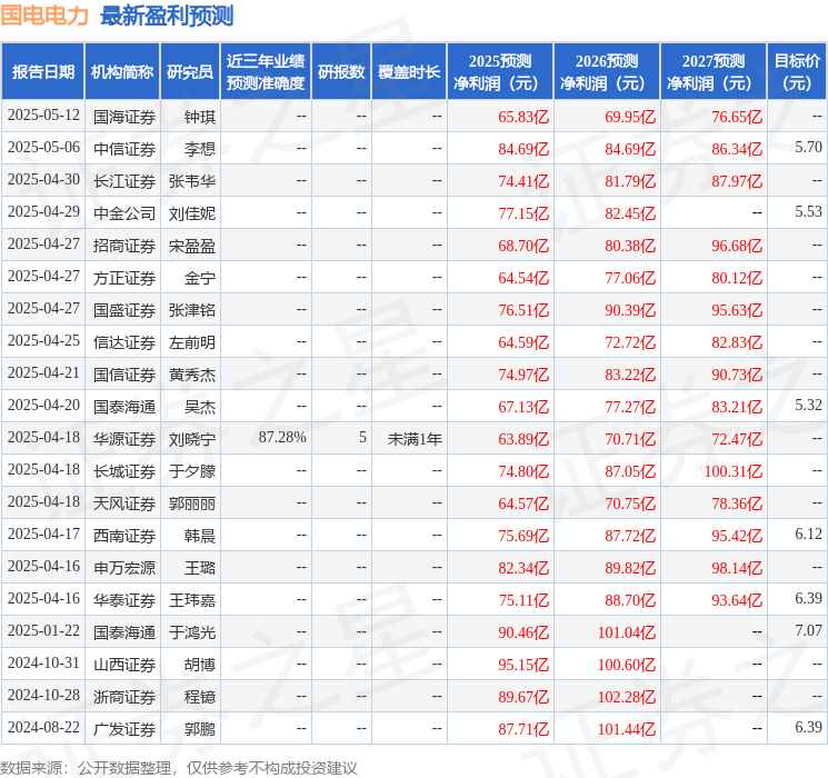 华源证券股份有限公司刘晓宁,查浩,邓思平近期对国电电力(600795)进行研究并发布了研究报告《业绩稳健略超预期水火投产贡献增量》,给予国电电力增持评级。